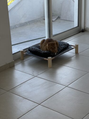 Έτσι το χρησιμοποιήσω χωρίς την επέκταση που φτάνει στο ταβάνι και το έχω στερεώσει απλώς σε μια άλλη κατασκευή που έχουμε κάνει για τα γατάκια μας.