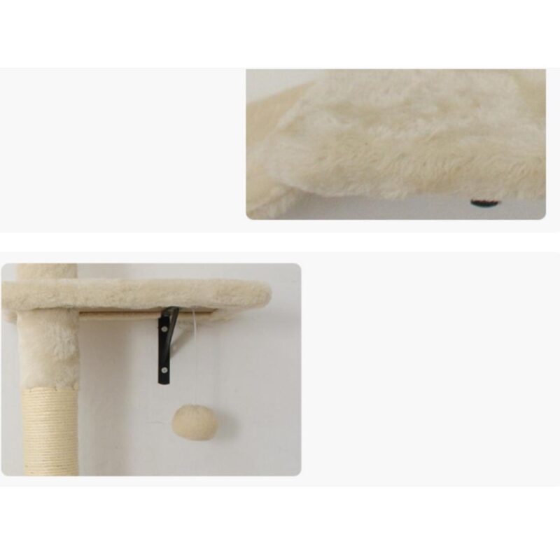 Το επιτοίχιο γατόδεντρο αναρρίχησης διαθέτει πολλαπλές πλατφόρμες έτσι ώστε οι γατούλες σας να παίζουν, να σκαρφαλώνουν και να χαλαρώνουν ικανοποιώντας τα φυσικά τους ένστικτα για εξερεύνηση, στη κορυφή μια ημίκλειστη άνετη φωλιά για ύπνο και ξεκούραση και ένα κρεμαστό pom pom μπαλάκι για παιχνίδι. Οι στύλοι είναι επενδυμένοι με 100% φυσικό σχοινί σιζάλ επιτρέποντας στις γάτες σας να απολαμβάνουν το ξύσιμο προστατεύοντας τα έπιπλα σας από πιθανές ζημιές.