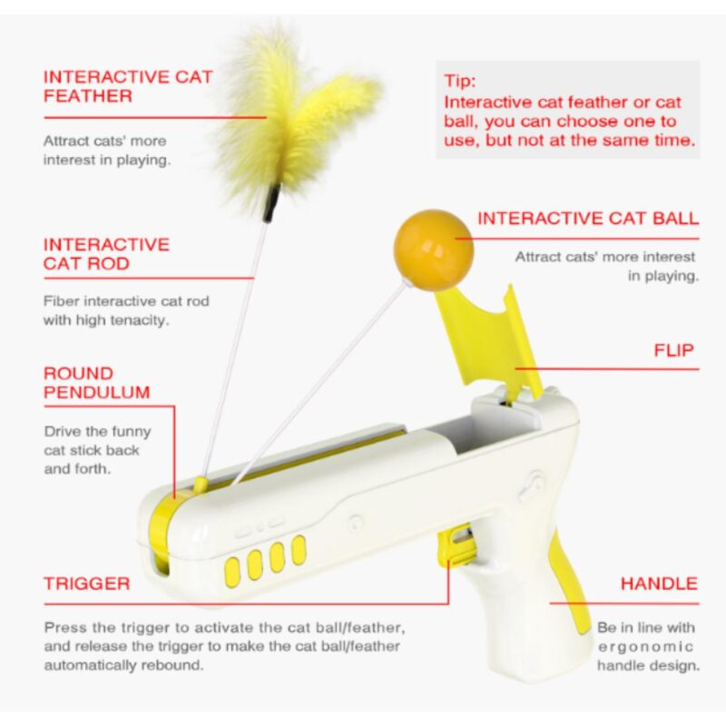 Πρόκειται για ένα έξυπνο, διαδραστικό παιχνίδι, το οποίο γυμνάζει και παράλληλα διασκεδάζει τη γατούλα σας. Την εκπαιδεύει, ακονίζοντας το μυαλό της και ενισχύοντας τα αντανακλαστικά της. Επίσης απομακρύνει το άγχος, τη βαρεμάρα, έτσι εκτός του ότι η γάτα σας θα παραμένει υγιής , δραστήρια, θα σταματήσει να καταστρέφει και να να ξύνει όλα τα έπιπλα του σπιτιού σας. Είναι απόλυτα ασφαλές για εσάς και το κατοικίδιο σας, κατασκευασμένο από ασφαλές υλικό ABS. Διαθέτει μπαλάκι και φτερό για εναλλαγή παιχνιδιού καθώς επίσης βελτιώνει τα αντανακλαστικά και τις δεξιότητες της γατούλας σας.