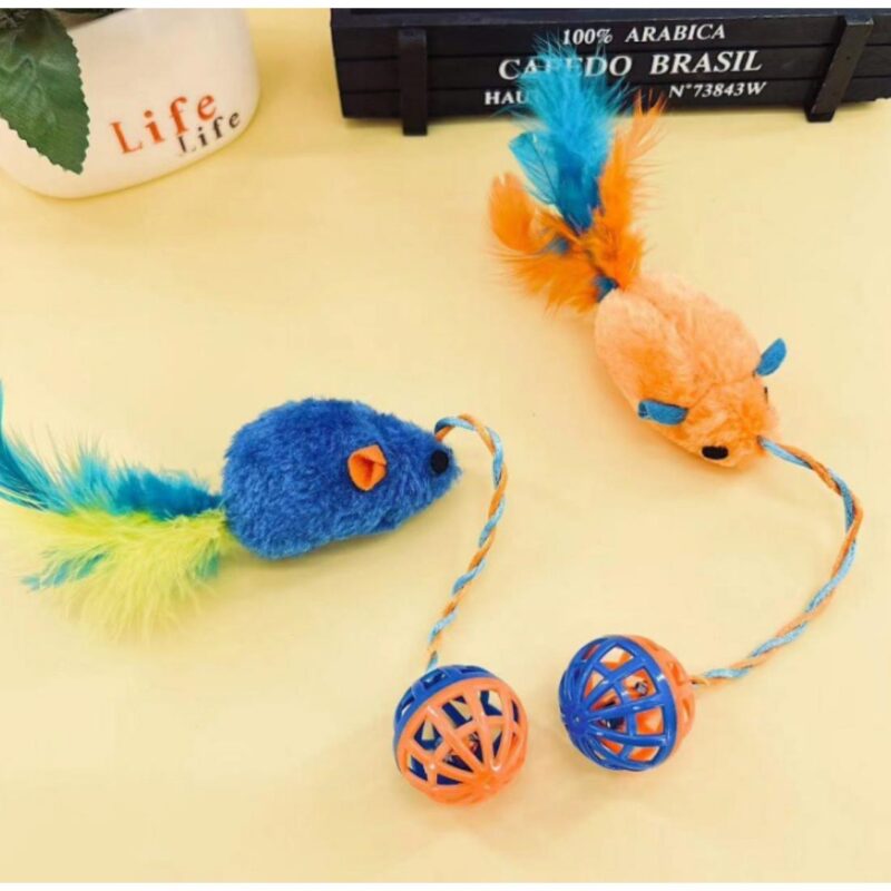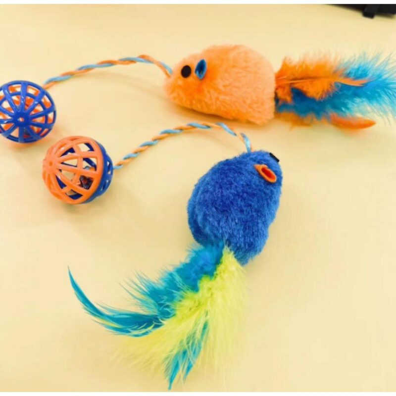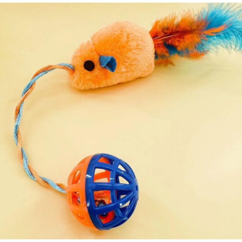 Το παιχνίδι γάτας με Ποντίκι και Μπάλα που κάνει ήχο σαν κουδουνάκι θα προσελκύσει την προσοχή και το ενδιαφέρον της γατούλας σας για ατελείωτο παιχνίδι! Το λούτρινο ποντικάκι με την δελεαστική ουρά-φτερό το οποίο κρέμεται από ανθεκτικό κορδόνι θα ξυπνήσει σίγουρα τα κυνηγετικά ένστικτα της γάτας. Κατασκευασμένο απο μη τοξικά υλικά ασφαλή για τη γάτα σας.