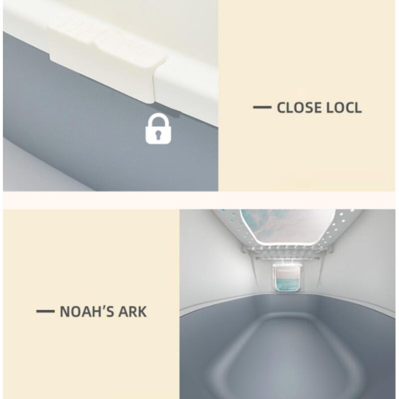 Αυτή η τουαλέτα κλειστού τύπου είναι αρκετά ευρύχωρη και μπορεί να φιλοξενήσει γατούλες διαφόρων μεγεθών όπου τις επιτρέπει να κινούνται με άνεση ευνοώντας τη σωματική τους υγεία. Είναι λειτουργική, κατασκευασμένη από υλικό (PP) φιλικό προς το περιβάλλον αλλά και πολύ στιβαρό ενώ παράλληλα παρέχει έναν ιδιωτικό χώρο για τις γατούλες σας.