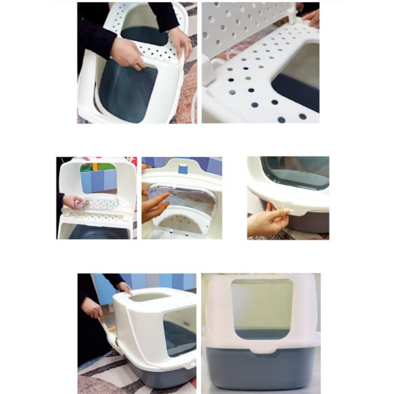 Αυτή η τουαλέτα κλειστού τύπου είναι αρκετά ευρύχωρη και μπορεί να φιλοξενήσει γατούλες διαφόρων μεγεθών όπου τις επιτρέπει να κινούνται με άνεση ευνοώντας τη σωματική τους υγεία.Είναι λειτουργική, κατασκευασμένη από υλικό (PP) φιλικό προς το περιβάλλον αλλά και πολύ στιβαρό ενώ παράλληλα παρέχει έναν ιδιωτικό χώρο για τις γατούλες σας. Διαθέτει είσοδο απο τη μπροστινή πόρτα και έξοδο απο το επάνω μέρος επιτρέποντας στις γάτες σας να εισέρχονται ή να εξέρχονται κατα βούληση απο το πάνω μέρος προσθέντοτας περισσότερη άσκηση και διασκέδαση! Επίσης διαθέτει ένα φτυαράκι το οποίο μπορεί να κρεμαστεί στο πλάι της τουαλέτας για εύκολη πρόσβαση, με αποσπώμενο σχεδιασμό για εύκολη εγκατάσταση, εξοικονομεί χώρο και είναι εύκολη στη μεταφορά.