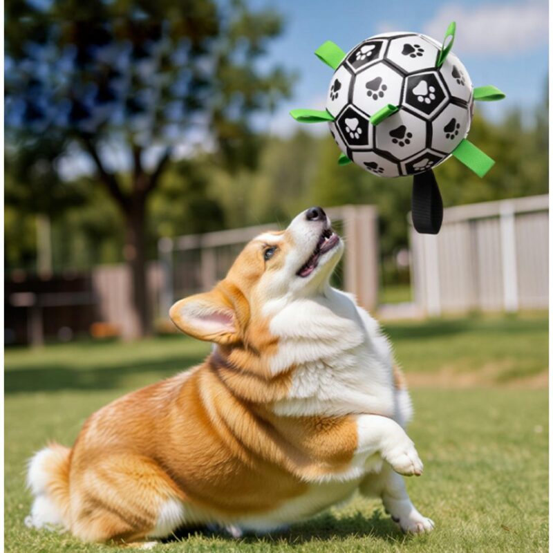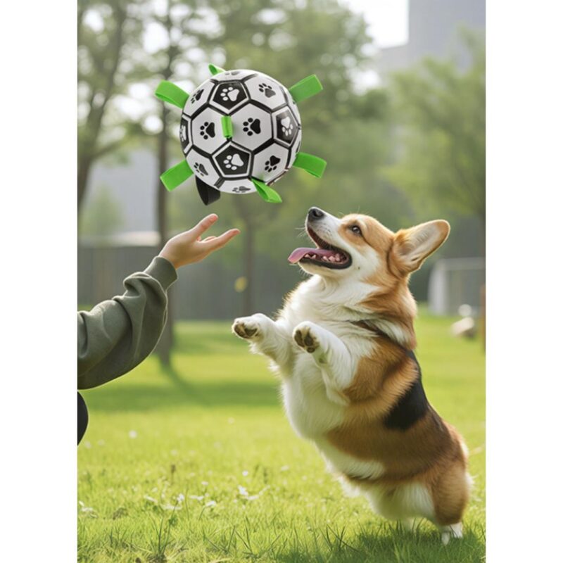 Κρατήστε τον τετράποδο φίλο σας χαρούμενο και υγιή με την μπάλα ποδοσφαίρου με ιμάντες. Βοηθά τον σκύλο σας να απελευθερώσει ενέργεια, να ενισχύσει τη νοημοσύνη του αλλά και να μειώσει τη μοναξιά και το άγχος. Σχεδιασμένη να λάμπει έντονα στο σκοτάδι παρέχοντας συνεχή διασκέδαση στον μικρό σας φίλο ακόμα και σε συνθήκες χαμηλού φωτισμού.